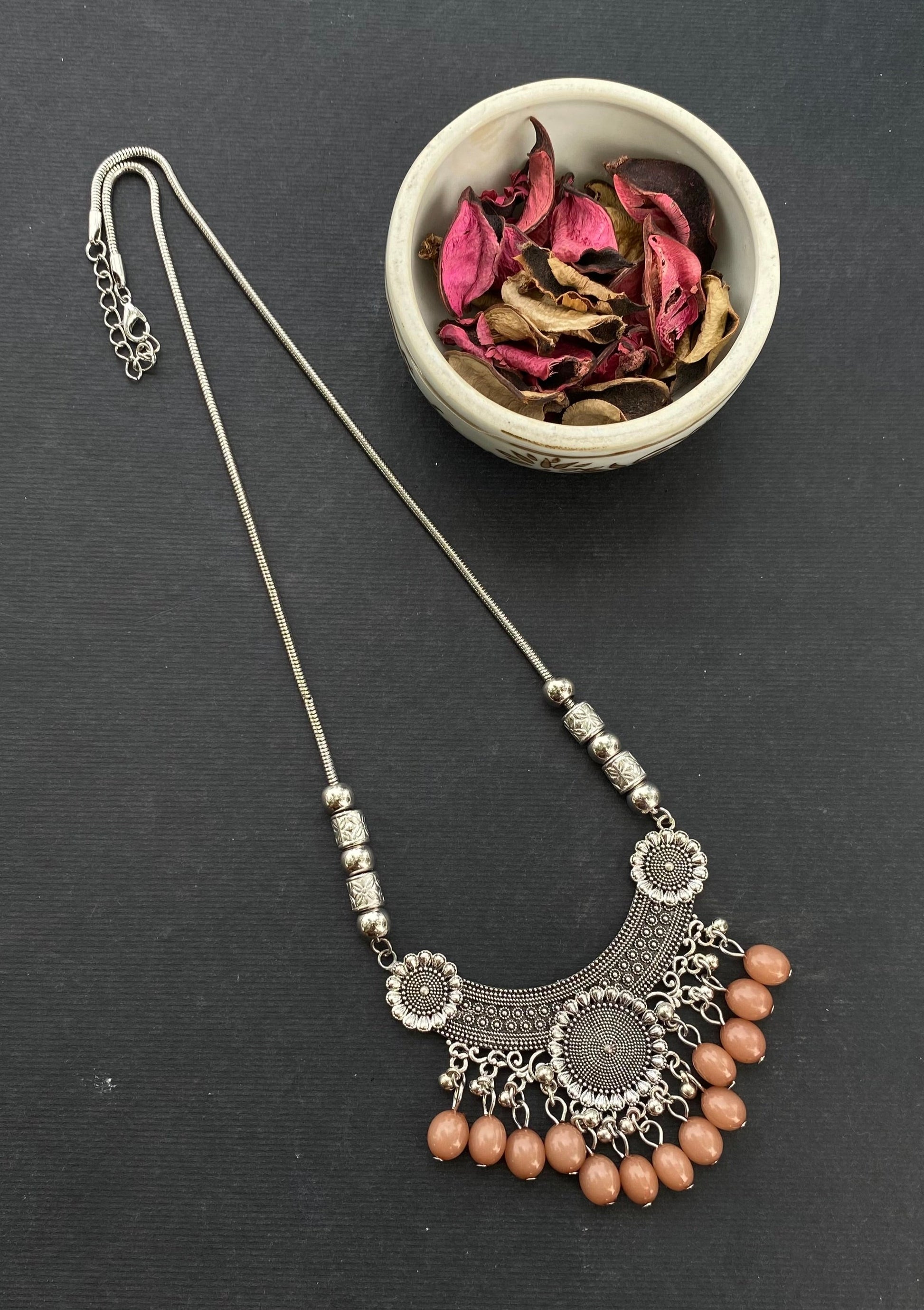 Antique long chain mala.Perfect for cultural events, festive occasions, or to elevate your everyday style, this oxidized mala with hanging ghungroos is a versatile addition to your jewelry collection.