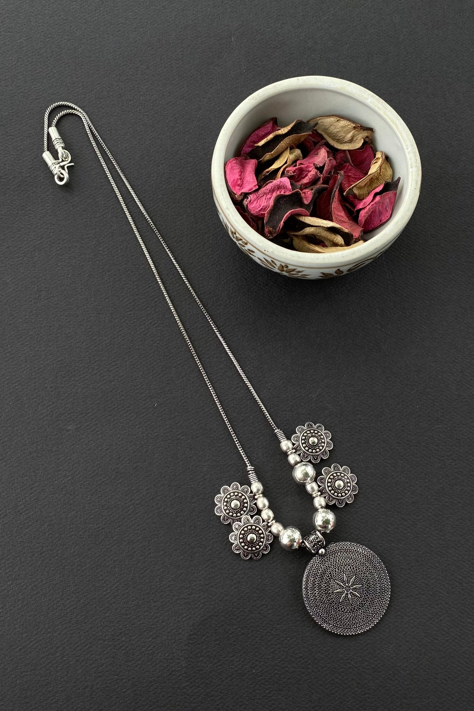 This festive season enhance your ethnic look with these silver ethnic mala